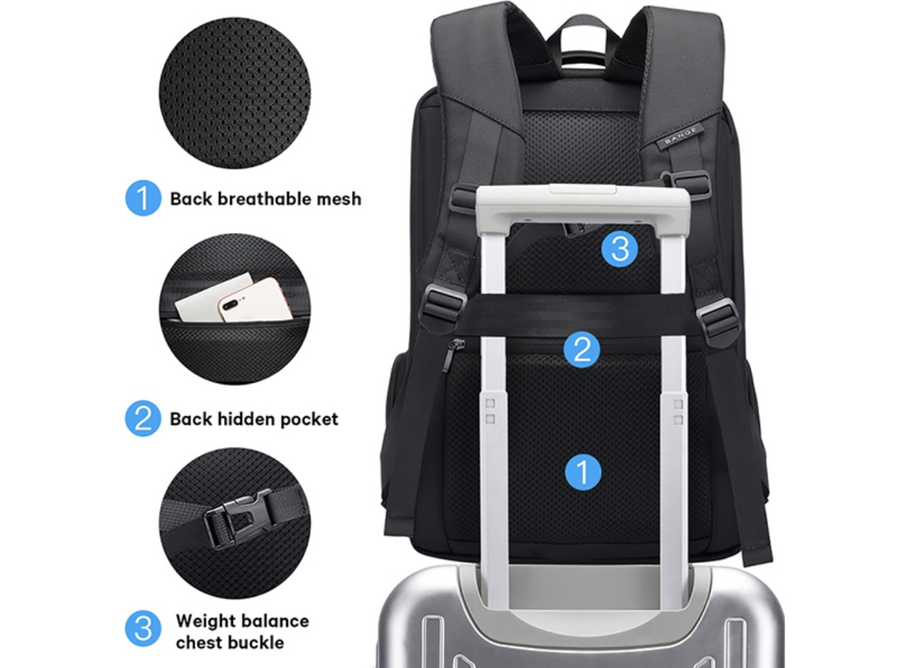 كوله پشتى يك وسيله كاربردى و راحت با ايمنى بالا براى حمل لوازم ضرورى مى باشد كه مورد نياز هر فردى است. كوله پشتى ضد آب بنج مدل BG-2603 با داشتن ظاهرى زيبا از كيفيت فوق العاده اى برخوردار مى باشد. اين كوله پشتى براى حمل بسيارى لوازم مانند لپتاپ، كتاب، آييد و ... طراحى شده و با داشتن پورت شارة USB براى استفاده روزمره، محل كار، مسافرت وحتى تحصيل مناسب است.