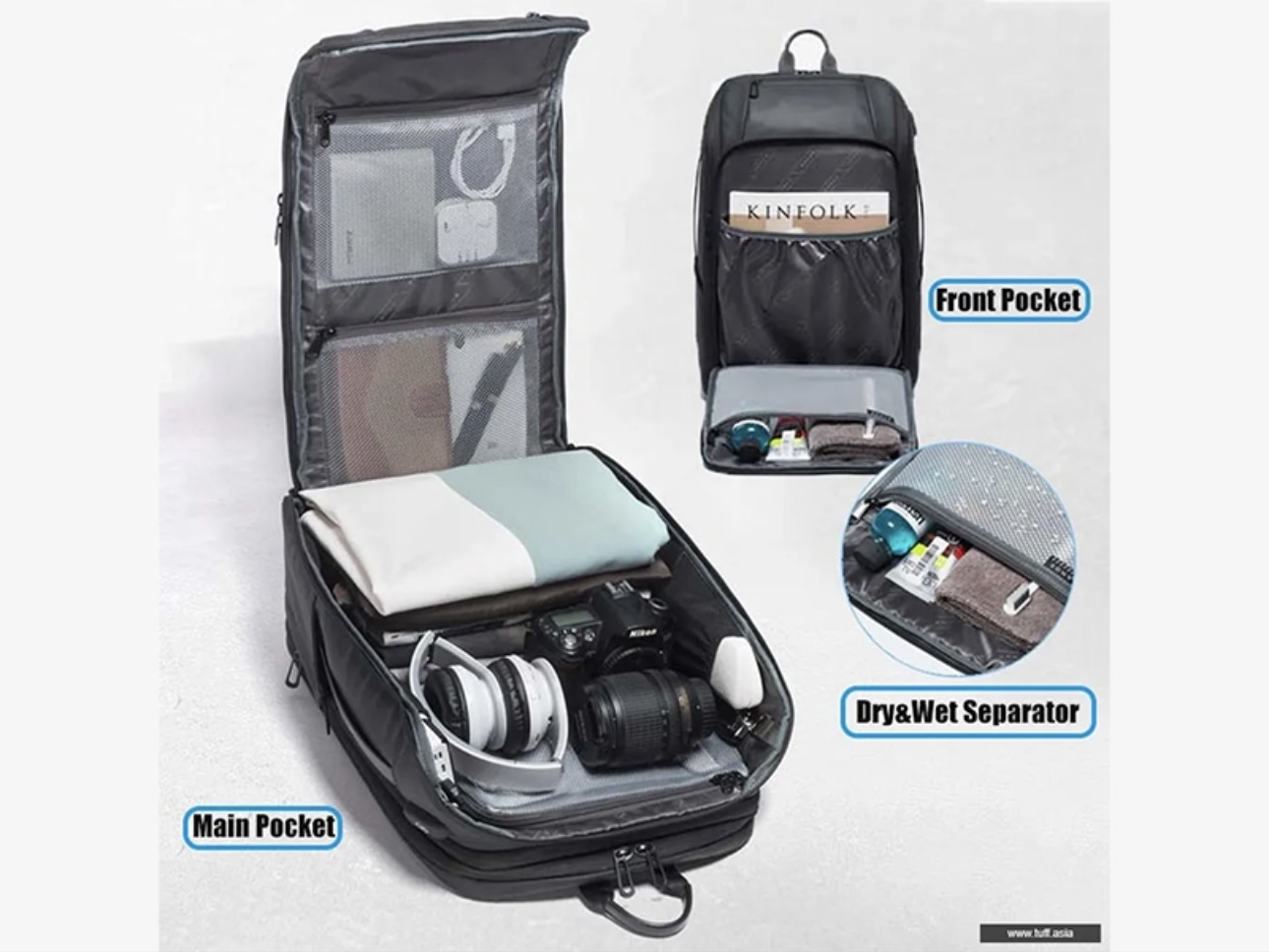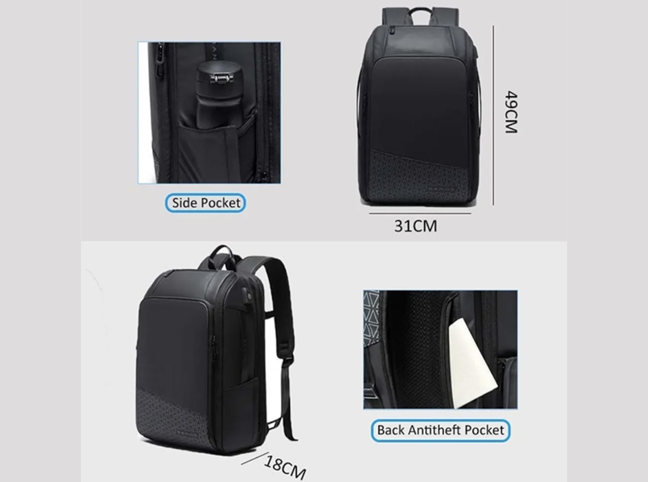 کوله پشتی ضد آب لپ تاپ 15.6 اینچ 35 لیتری یو اس بی دار بنج کد22005