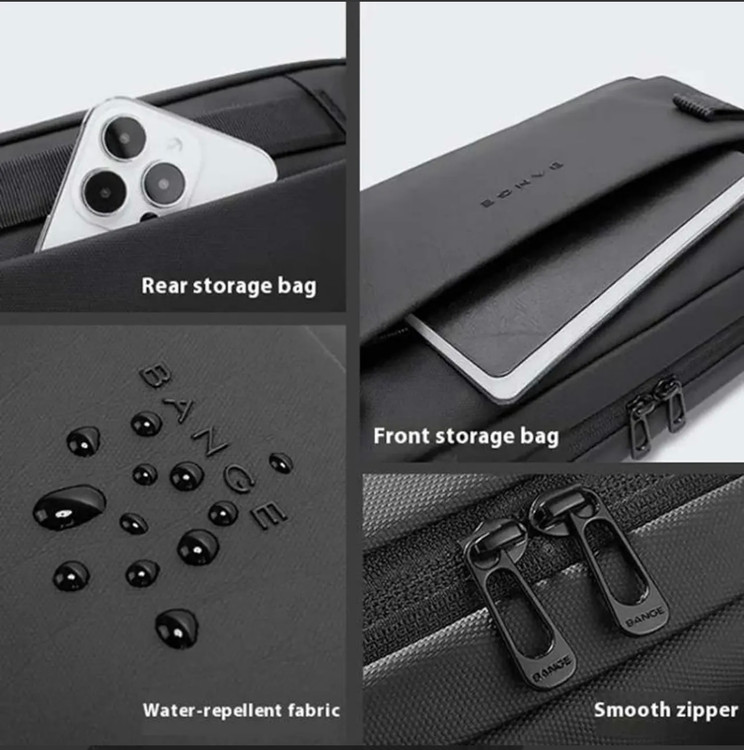 کیف روو دوشی BANGE BG‑7837 با بخشهای متعدد داخلی و خارجی برای تلفن همراه، پاور بانک، مدارک، کیفپول و حتی بطری آب طراحی شدهاست تا هر وسیله جای مشخص خود را داشته باشد. این تقسیمبندی هوشمند باعث میشود نیاز به جستوجوی طولانی در کیف وجود نداشته باشد و دسترسی سریع به اقلام پرکاربرد ممکن شود. بهعلاوه، بخشهای تفکیکشده، نظم کیف را حفظ کرده و استفاده روزمره را سادهتر میکنند. طراحی جمعوجور در عین داشتن ظرفیت مناسب، تعادل کاملی میان اندازه، راحتی و عملکرد ایجاد میکند.