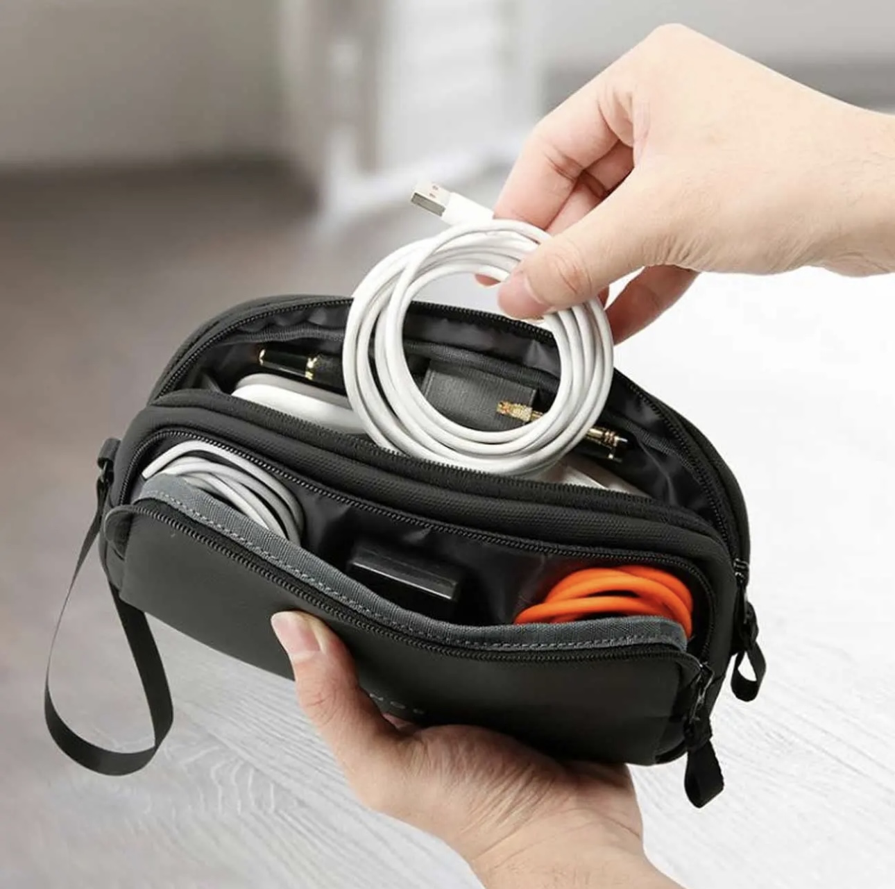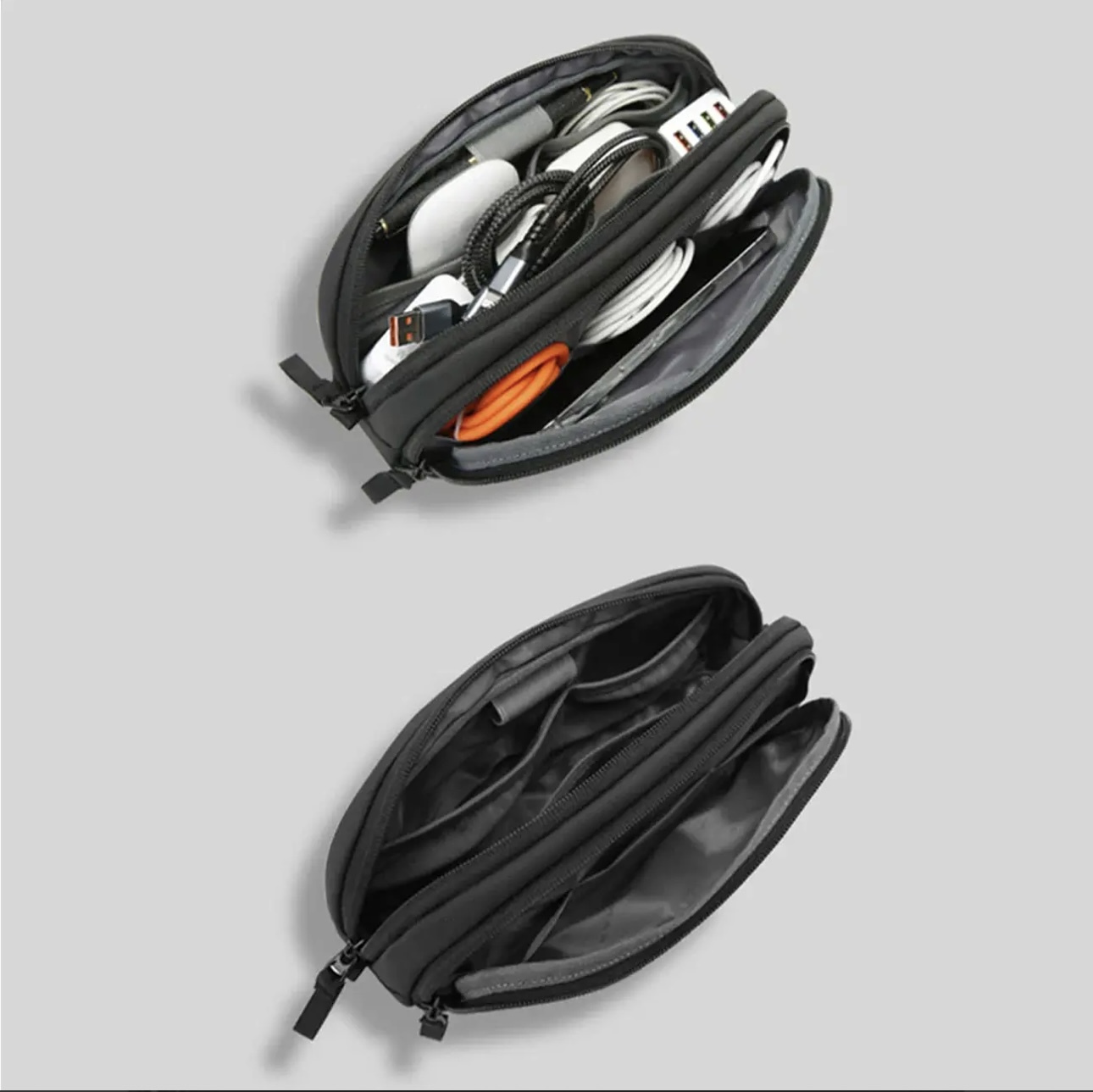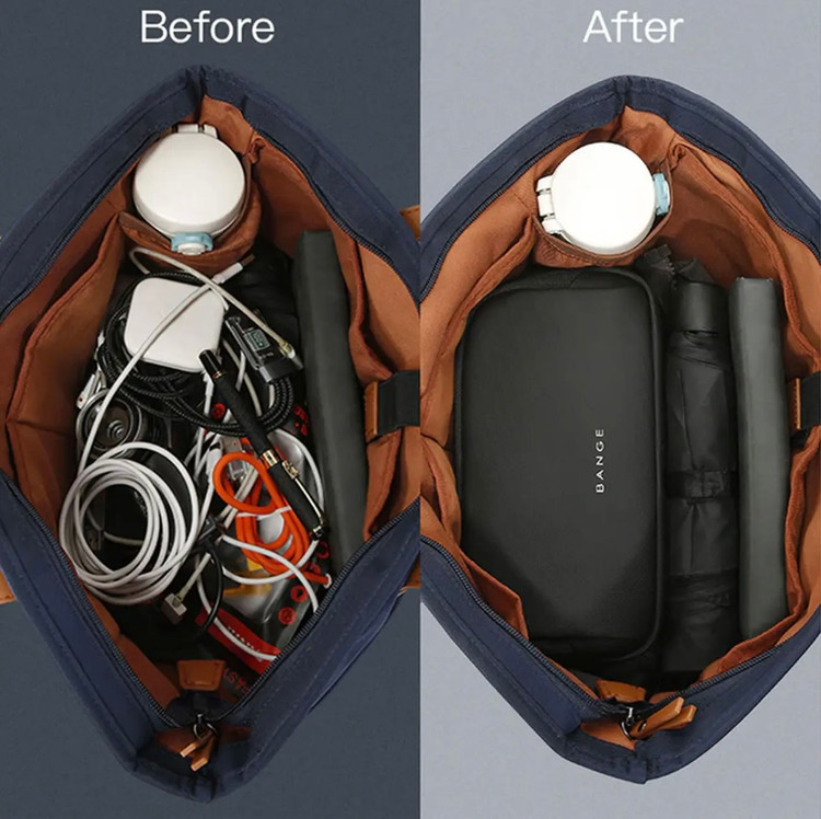 کیف گجت بنج با بهرهگیری از طراحی چندبخشی و جیبهای داخلی متنوع، فضای ایدهآلی برای نگهداری کابل شارژ، پاوربانک، فلش مموری، هندزفری، شارژر دیواری و دیگر اقلام دیجیتال کوچک فراهم میکند. وجود بخشهای جداگانه تضمین میکند که هیچ وسیلهای با دیگری برخورد نکند و دسترسی به هر آیتم در کوتاهترین زمان ممکن انجام شود. این ویژگی بهویژه برای افرادی که به نظم و دسترسی سریع اهمیت میدهند، بسیار ارزشمند است. طراحی دقیق این بخش، به شما اجازه میدهد تا با خیال راحت، تمام وسایل کوچک را به شکلی سازمانیافته جای دهید و از شلوغی جلوگیری کنید، که برای افرادی که به مرتبسازی اهمیت میدهند، یک مزیت بزرگ محسوب میشود.