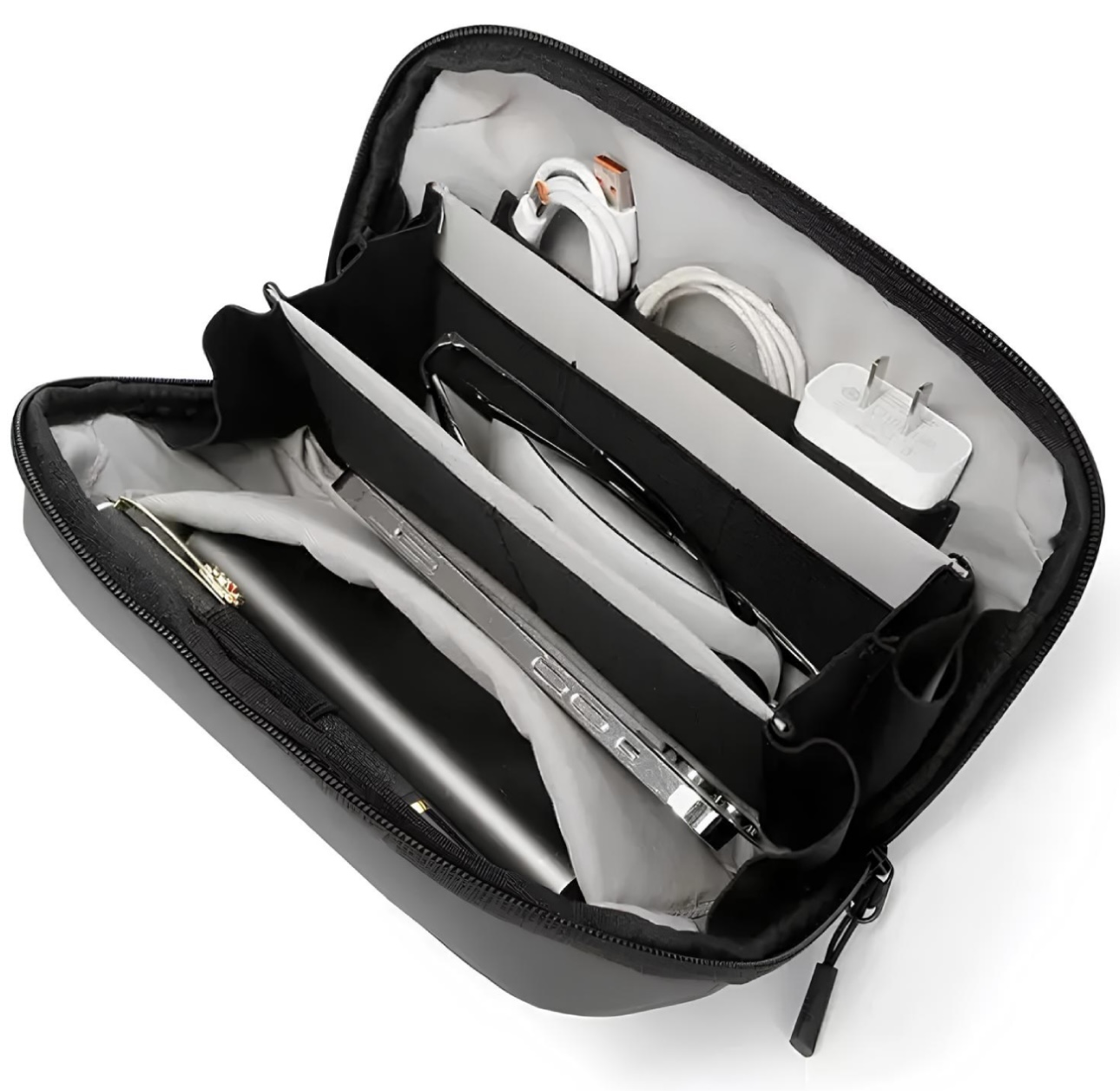 كيف لوازم ديجيتال و نظم دهنده بنج BG-6800 انتخابى حرفه اى براى افرادى ست كه به نظم، امنيت وظاهر شيك اهميت مى دهند. با طراحى داخلى سه محفظه اى، جيب جلويى كاربردى، زيب روان دوطرفه وبازشدن فنرى با زاويه 70 درجه، تمام لوازم جانبى ديجيتالى شما هميشه در دسترس ومرتب هستند. بدنهى ضداب با كيفيت بالا، خيالتان را از هركونه نفوذ رطوبت راحت من كند وبند دستى مقاوم نيز حمل آن را سادهتر كرده است. جه براى استفاده روزمره، جه سفر يا هديه، اين كيف انتخابى كاريردى و شيك براى هر سليقه اى است