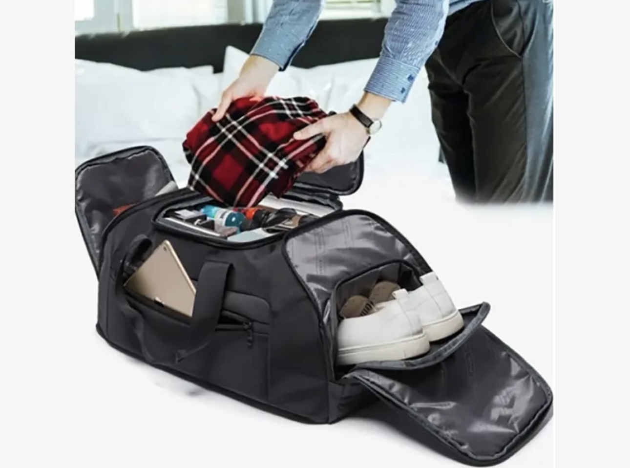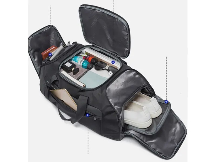 محفظه جانبی در کنار کیف برای گذاشتن وسایل کوچکتر مانند پاوربانک، دفترچه یادداشت و ... مناسب می باشد. قابل توجه است که محفظه نگهداری کفش از بقیه قسمتها جدا می باشد تا کثیفی یا بوی نامطبوع به دیگر لوازم شما سرایت نکند. جیب زیپی جلو مناسب برای قرار دادن گوشی موبایل شماست.