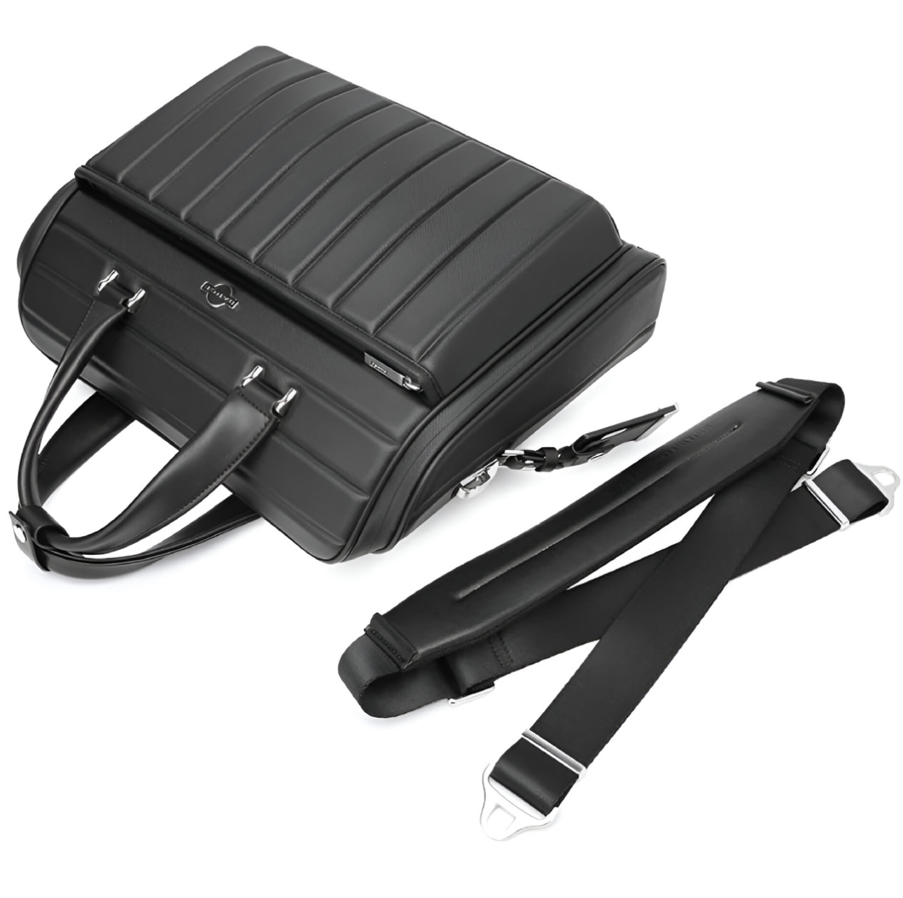کیف دوشی BANGE YZ350 با طراحی هوشمندانه و ظاهری مینیمالیستی خود، کاملاً مناسب فضای رسمی و حرفهای است. جیب جلویی برای کتاب یا یادداشت، محفظه اصلی برای لپتاپ یا آیپد، و جیبهای داخلی برای وسایل کوچکتر در نظر گرفته شدهاند. بند پشتی مخصوص اتصال به چمدان و اسلات مخصوص کارت شناسایی از دیگر نکات کاربردی این طراحی هستند.