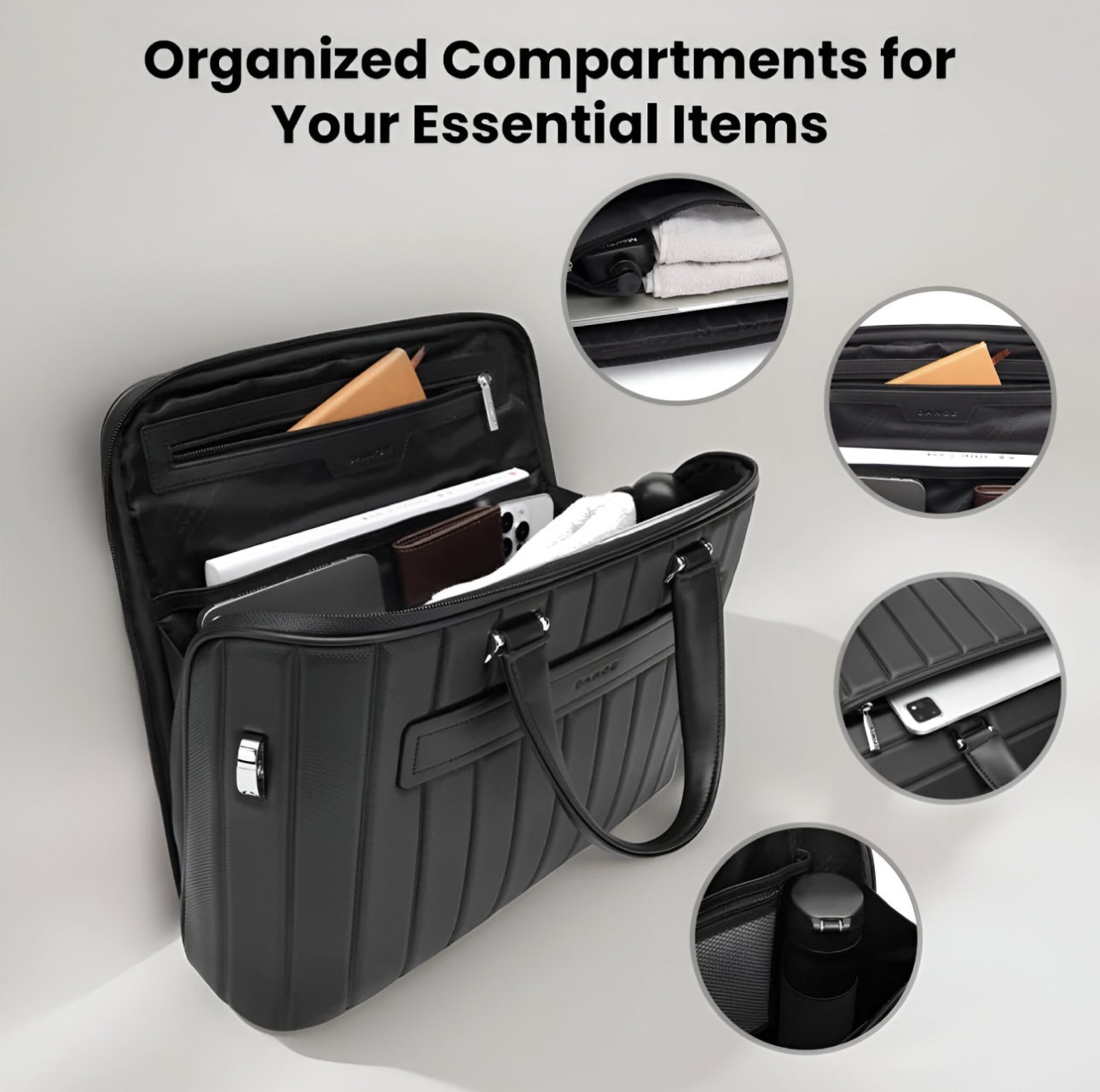 - محفظههای داخلی: برای لپتاپ، موبایل، قلم، کیف پول و سایر لوازم