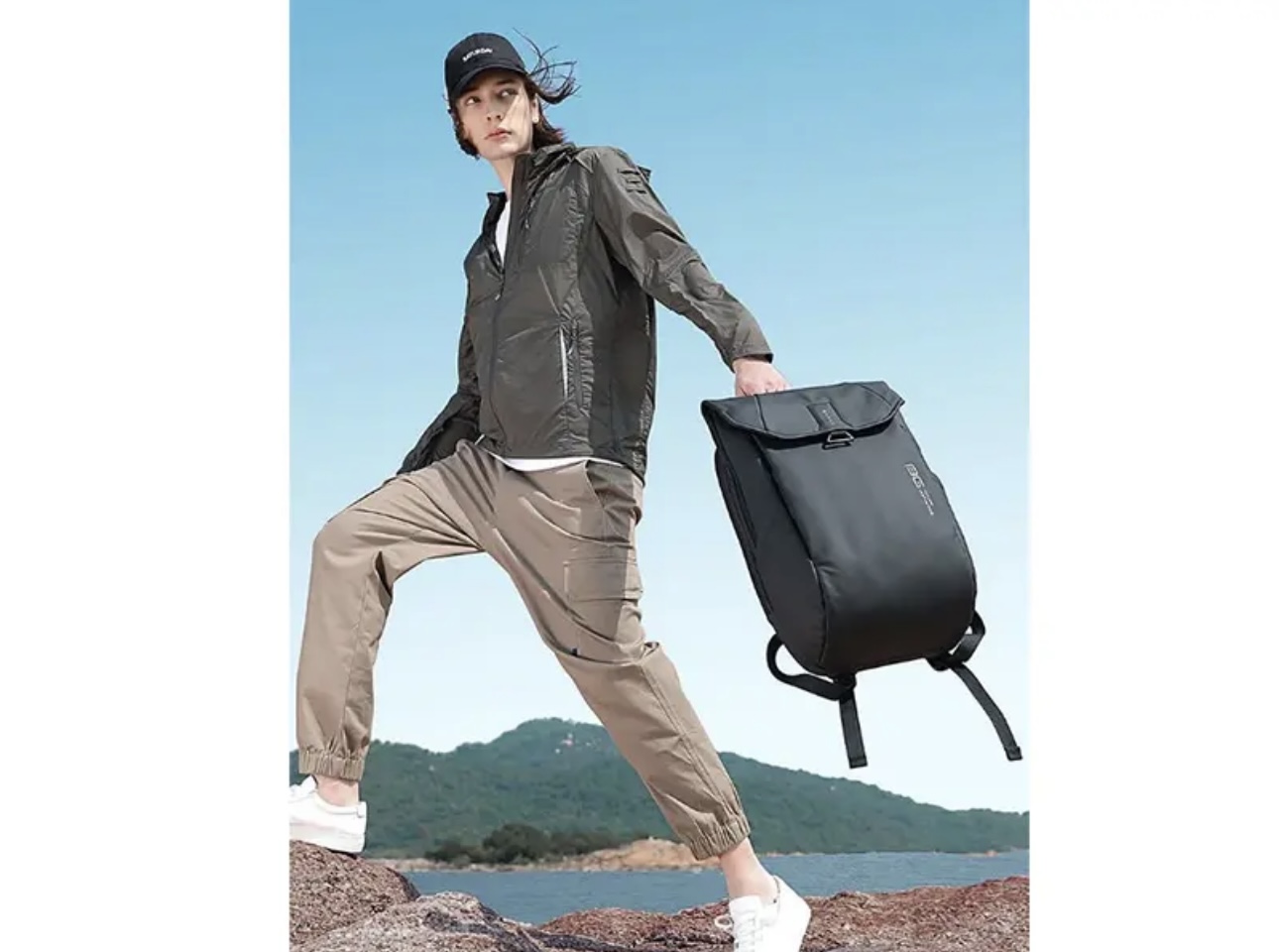 در طراحی کوله پشتی ضد آب بنج BG-2575 پورت USB میبینید که برای شارژ کردن موبایل یا هر دستگاه دیگری قابل استفاده است که در قسمت خارجی کیف در سمت چپ قرار دارد. تلفن خود را در دو مرحله آسان شارژ کنید: