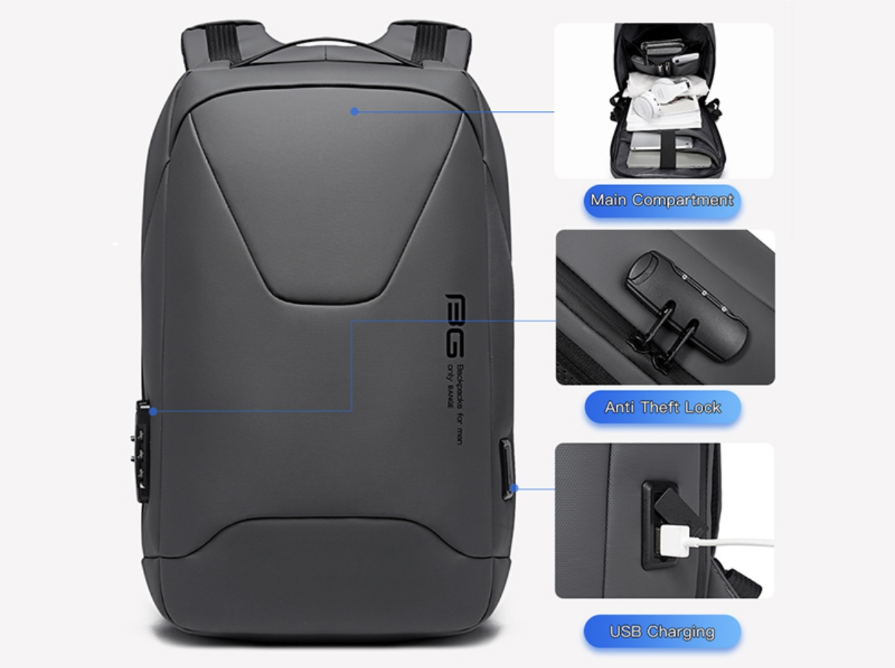 كوله يشتى ضد آب وضد سرقت داراى پورت يو اس مناسب براى لپ تاپ 15.6 اينج بنج مدل 22188